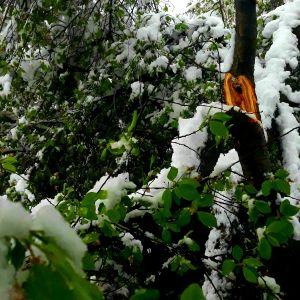 Bahorda daraxtlarda qor bor